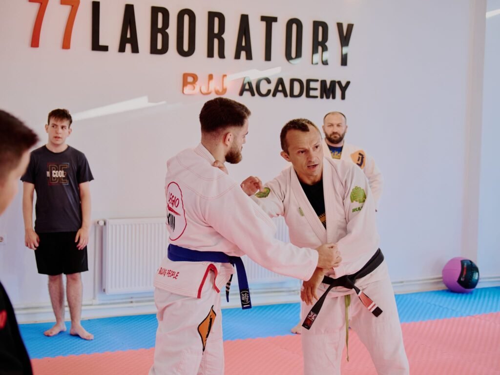 Niciodată. La 77 Laboratory avem membri de toate vârstele (30, 40, 50+ ani). Jiu-Jitsu este adesea numit „șah cu corpul uman”; se bazează pe tehnică și pârghii, nu pe forță brută sau explozie. Poți progresa în ritmul tău, într-un mediu controlat și sigur.